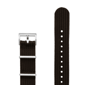 This brown ‘Alliance’ Seichu NATO strap belongs to a collection inspired by colours associated with the origins of the NATO watch strap. The NATO strap was first introduced as a military watch accessory in the 1970s for durability and practicality, to stay still and secure on the wearer’s wrist – as well as adding a certain style; the requirements of longevity and comfort remain today.