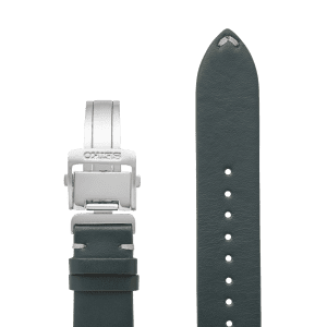 This dark green leather strap belongs to a collection of premium straps, each with a sleek leather design.