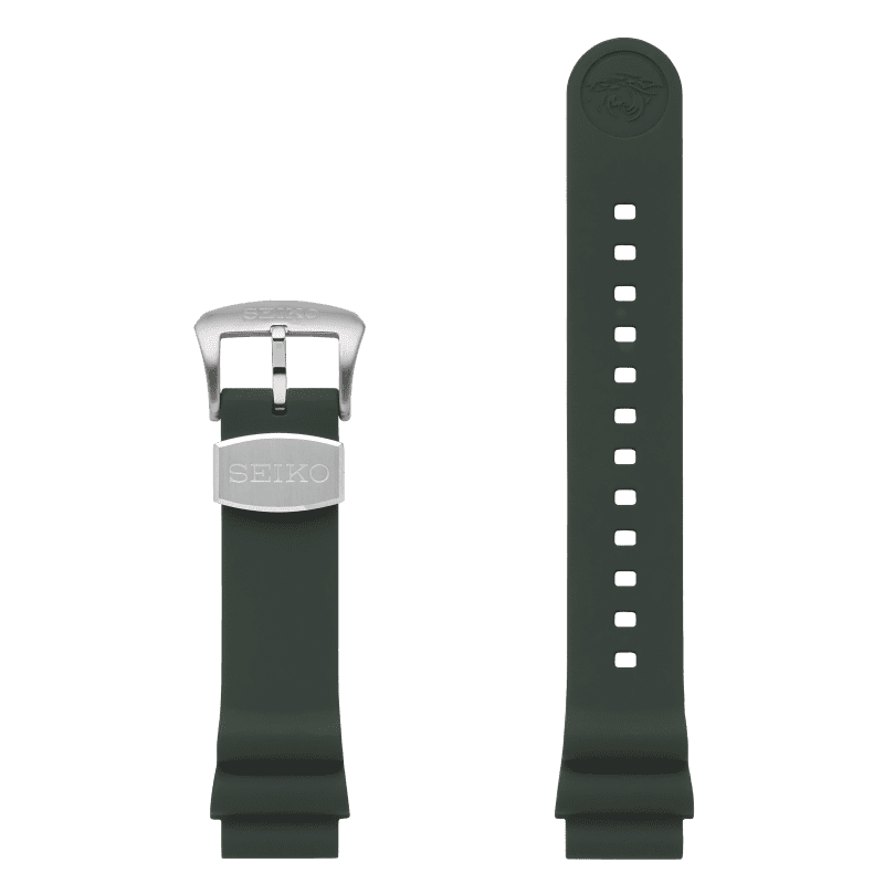 The accordion strap was a world-first invented by Seiko in 1975 and changed the future of Diver’s watches. Highly durable and comfortable, it is designed to expand and contract just as the diver’s wrist naturally does at different depths underwater. This silicone strap will fit any Diver’s watch with a 20mm lug width.