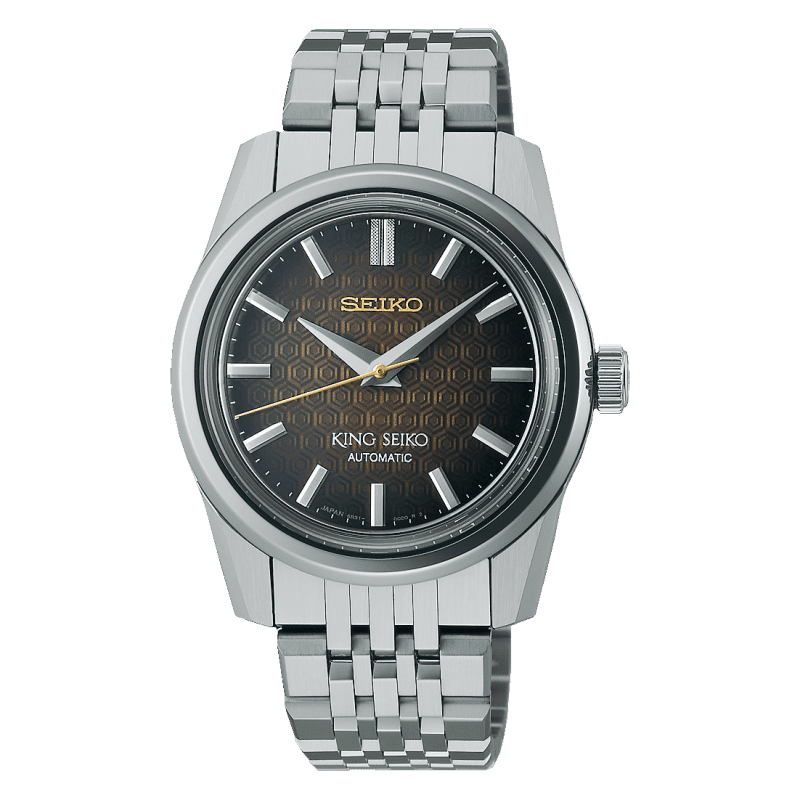 The unique dial adopts our newly developed signature pressed pattern – “Kameido-Kikko 亀戸-亀甲” – inspired by the birthplace of the King Seiko brand: Kameido in Tokyo. The repeated textured shapes are designed to look like a collection of turtle shells.