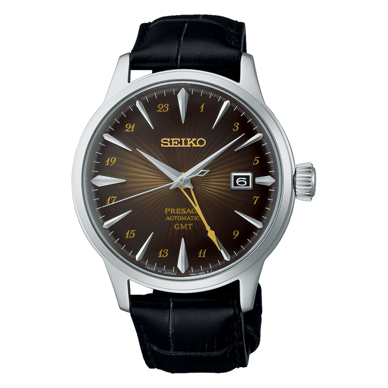 This watch is one of a new trio of Seiko watches which are Presage’s first Cocktail Time pieces with GMT functionality.