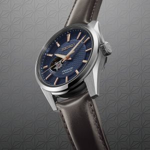 This ‘Midnight’ blue dial watch is from the Seiko Presage Sharp Edged collection, inspired by ancient and modern Japanese design. It features a new case design with a mirror finishing on both lug sides along with a striking new two-layered dial.
