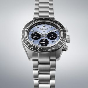 This solar powered chronograph timepiece is from the Prospex Speedtimer watch collection which represents Seiko’s professional timekeeping heritage.