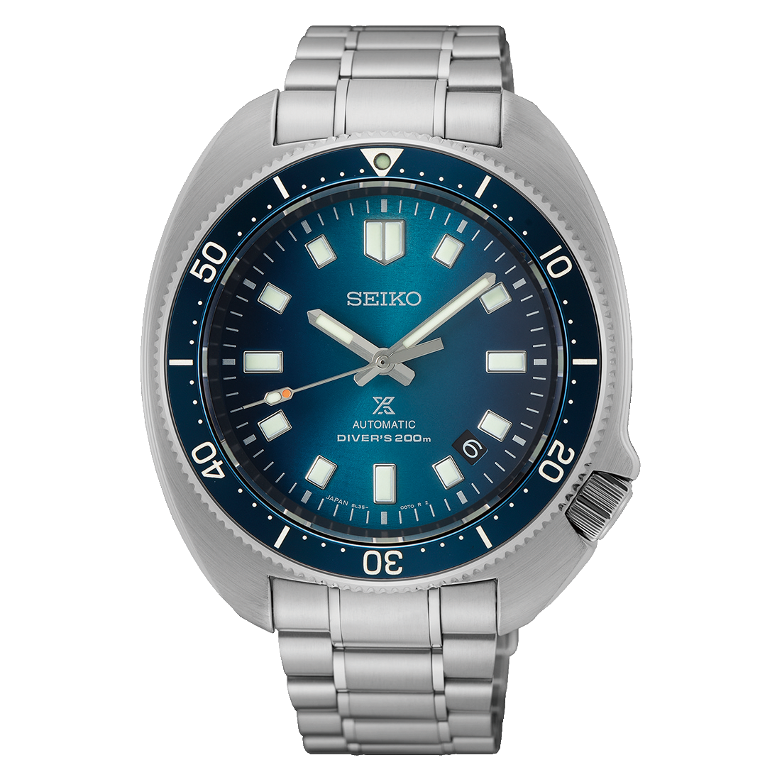 This Automatic watch has a ‘Turtle’ or ‘Willard’ case shape and is fully compliant with ISO-6425 diver’s watch requirements with readability at 25cm in total darkness as well as chemical, magnetic and shock resistance.