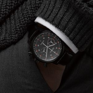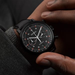 The colour scheme of this limited-edition is in black and red to commemorate the 1972 Winter Olympics – the black dial reduces the reflection of light whilst the eye-catching red markers on the indices provide high visibility in any field, with the minute counter subdial at the 9 o’clock position. Concealed stitching on the reverse of the calf leather strap ensure its longevity.
