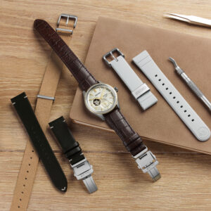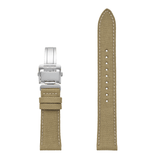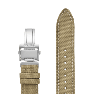 This strap is leather-lined, topped with khaki nylon fabric for extra durability. The deployant clasp allows extra support to stay comfortable throughout all kinds of activities. It will fit any sports watch with a 20mm lug width.